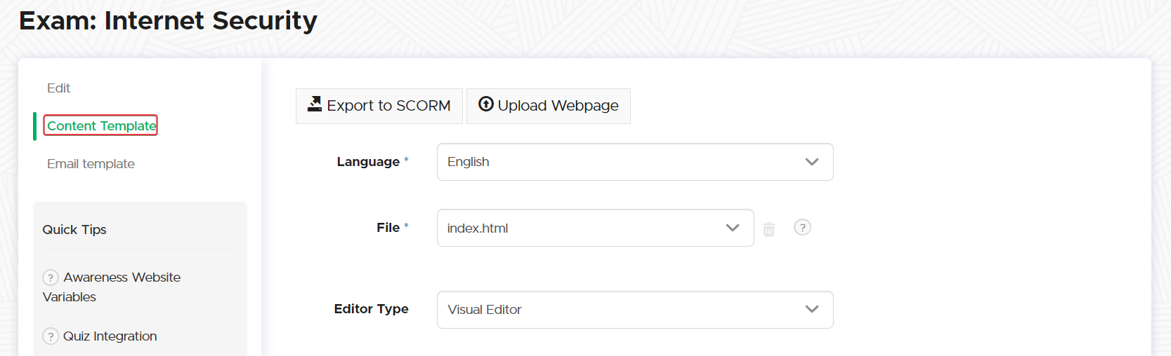 Navigate to **Templates -> Awareness Templates**&#x20;